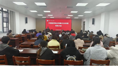 来源:外国语学院 作者:谭宇3月19日下午,外国语学院2026年党建工作大会在求真楼B701召开。学院全体党委委员、师生党员参加会议。会议由学院分党委书记王官华主持。会议严格落实“第一议题”制度,王官华领学了《习近平关于树立和践行正确政绩观论述摘编》。会上,全体党员认真审议并一致通过了《外国语学院202...
