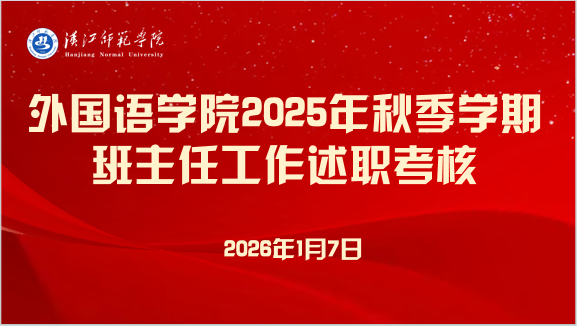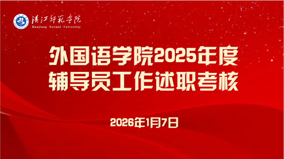 来源:学工办 作者:谭宇为全面总结2025年度学生工作成效,加强辅导员队伍建设,提升育人工作水平,2026年1月7日上午8:30,外国语学院在求真楼A704会议室召开了2025年度辅导员工作述职考核大会。分党委书记王官华、院长祝东江、副院长冯晓华出席会议。会议由王官华主持。姜娟、凌爽、谭宇、陈雨四位专职辅导员依次登台,...