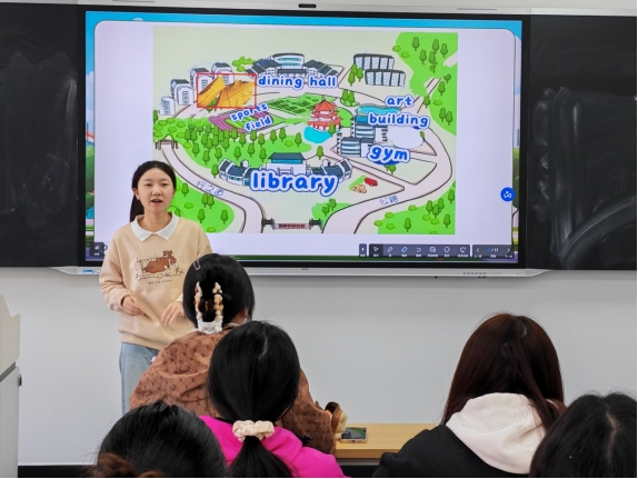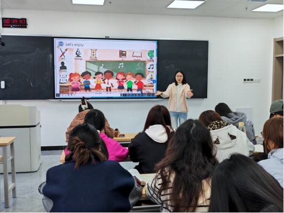 为深化师范类专业教学改革,提升英语师范生课堂教学实践能力,10月28日上午,我院《英语课堂教学技能训练》示范公开课在求真楼A404教室顺利开展。本次公开课由外语学科教学论(对外汉语)教研室教师方圆主讲,教研室成员及学院其他教师到场观摩并参与评课。公开课以“歌曲辅助初中英语教学”为实训主题,通过“理论指导—实践演练—多元评价”的闭环设计,凸显学生主体地位,融合信息技术与AI工具,展现了新时代师范教育“以教促学、以评促改”的鲜明特色,获得在场师生一致好评。