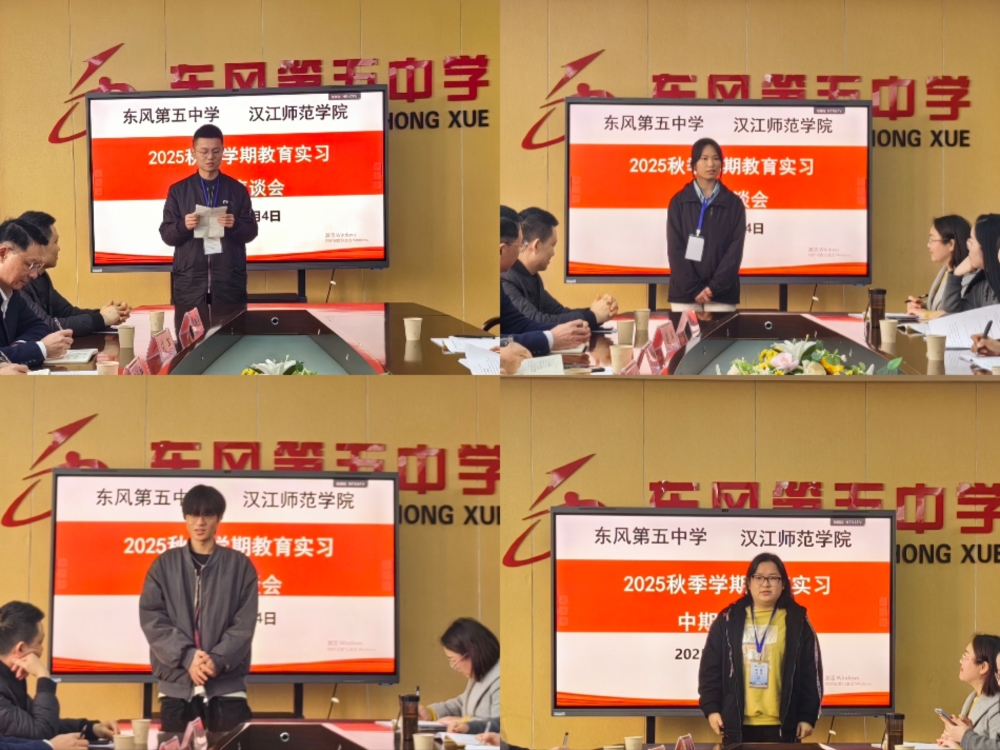 本次检查采用“座谈交流+实地走访”相结合的模式,分两个阶段有序进行。座谈会由外国语学院分党委书记王官华主持,相关学院实习生代表依次发言。同学们真诚感谢学校与东风五中搭建的实践平台,围绕师德师风培育、班级管理技巧、课堂节奏把控、课外辅导实践等维度,详细分享了实习期间的成长收获与实践感悟,并明确汇报了后续“深耕课堂设计”“加强学情分析”的实习计划。