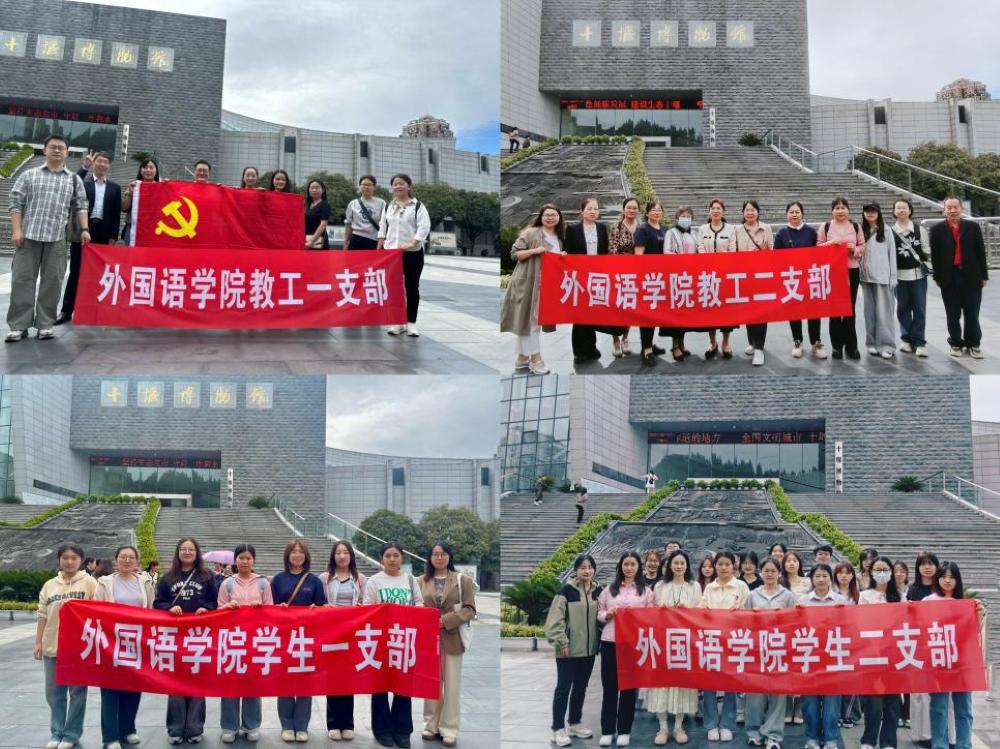 为弘扬伟大抗战精神,深化地方历史教育,凝聚学校事业发展强大力量,9月25日下午,汉江师范学院外国语学院各党支部联合组织全体教师党员、党外知识分子、学生党员、入党积极分子及青马班学员,前往十堰市博物馆开展支部主题党日暨师生市情教育活动,在十堰市博物馆讲解员的带领下,开启了沉浸式现场实践教学。活动由外国语学院党委书记王官华主持。