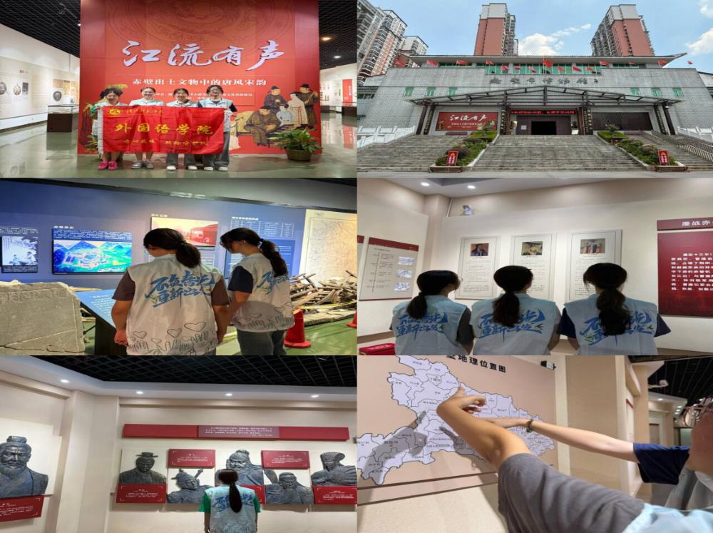 博物馆里悟古今:在赤壁博物馆,队员们凝神聆听三国风云,面对青铜兵器、古船模型,尝试用双语记录文物故事,将历史沉淀融入专业学习。
