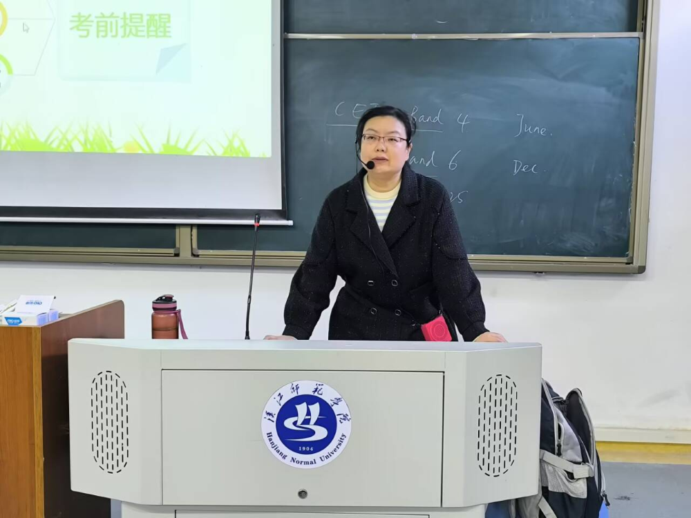 2025年11月20日下午三点,汉江师范学院丹江校区西一教室座无虚席,气氛热烈。为帮助同学们更好地备战全国大学英语四六级考试,外国语学院杨鸿副教授为莘莘学子带来了一场内容丰富、针对性强的“四六级考前辅导”专题讲座。