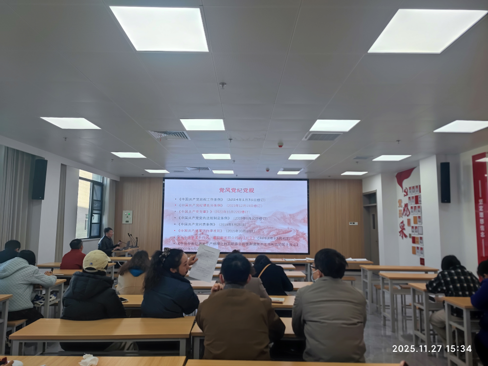 为深入学习贯彻党的二十届四中全会精神,全面落实习近平总书记关于党的纪律建设的重要论述,持续巩固拓展中央八项规定精神成果,11月27日,外国语学院分党委书记王官华在求真楼A704会议室,为学院党员干部讲授了一堂主题鲜明、内容深刻的党纪专题党课。