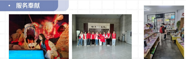 在努力提升自身的同时,她始终怀揣着一颗感恩之心,积极投身志愿服务活动,用行动践行社会责任。她多次参与学校的社会实践、十堰博物馆志愿讲解服务活动、一丢书屋、食堂文明就餐活动等。学校迎新期间,她热情地帮新生搬运行李,耐心解答新生和家长的疑问,让他们初入校园就感受到学校的关怀。作为一名生在红旗下、长在春风里的青年,她始终坚持冲锋在前,将小我青春融入中华民族伟大复兴的建设当中,献萤火微光筑万丈光芒,在热心公益中践行“纸上得来终觉浅,绝知此事要躬行”。