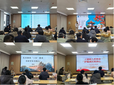 姜娟、凌爽、谭宇、陈雨四位专职辅导员依次登台,围绕2025年度履职情况进行公开述职。各位辅导员准备充分,汇报内容详实,逻辑清晰。她们从安全稳定、思想价值引领、学风建设、心理健康教育、资助育人、实践育人、就业指导与服务、实习管理、党团建设、创新创业教育等多个维度,全面梳理了年度工作重点、特色做法、取得成果与个人反思。述职报告既展示了辅导员队伍立足岗位、扎实肯干,圆满完成各项基础工作的责任担当,也凸显了结合外语专业特点和学生实际需求,在精细化管理、个性化指导、品牌活动打造等方面的积极探索与显著成效,生动呈现了外国语学院学生工作队伍在过去一年中育人为本、守正创新的奋进姿态。