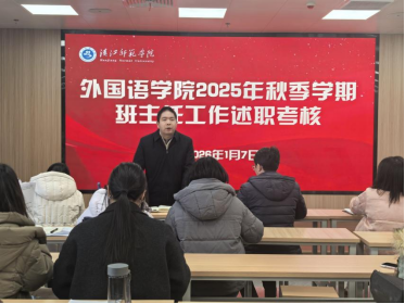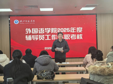 为全面总结2025年度学生工作成效,加强辅导员队伍建设,提升育人工作水平,2026年1月7日上午8:30,外国语学院在求真楼A704会议室召开了2025年度辅导员工作述职考核大会。分党委书记王官华、院长祝东江、副院长冯晓华出席会议。会议由王官华主持。
