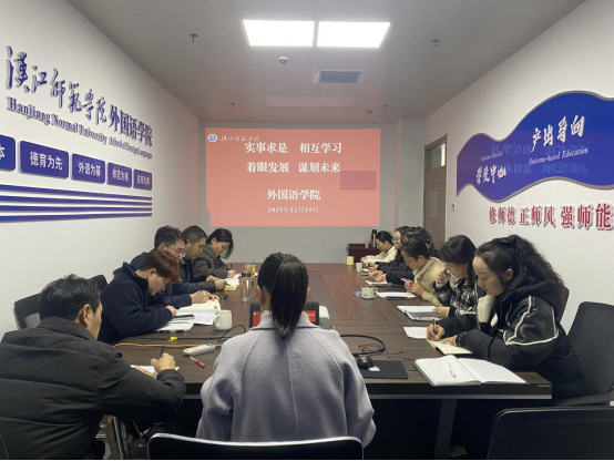 来源:学院办公室 作者:姜娟12月19日下午,外国语学院在求真楼A716会议室召开各2025年度各教研室、院办、教科研办、学工办述职考核会。院长祝东江、分党委书记王官华、副院长齐雁飞、冯晓华,教研室主任刘鹏、戴雪梅、彭小燕、龚春芬、黄园、余新星,院办主任陈曼历,学工办负责人姜娟、谭宇参加会议。会议由祝东江主...